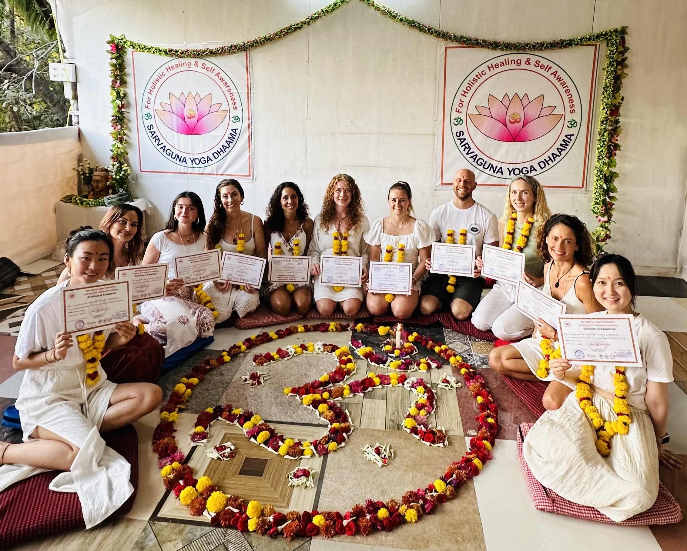 Sarvaguna Yoga is an internationally recognized Yoga Teacher Training School rooted in authentic yogic tradition. Located in the serene beaches of Goa and the spiritual Himalayas of Dharamsala, we offer a transformative journey beyond physical practice.